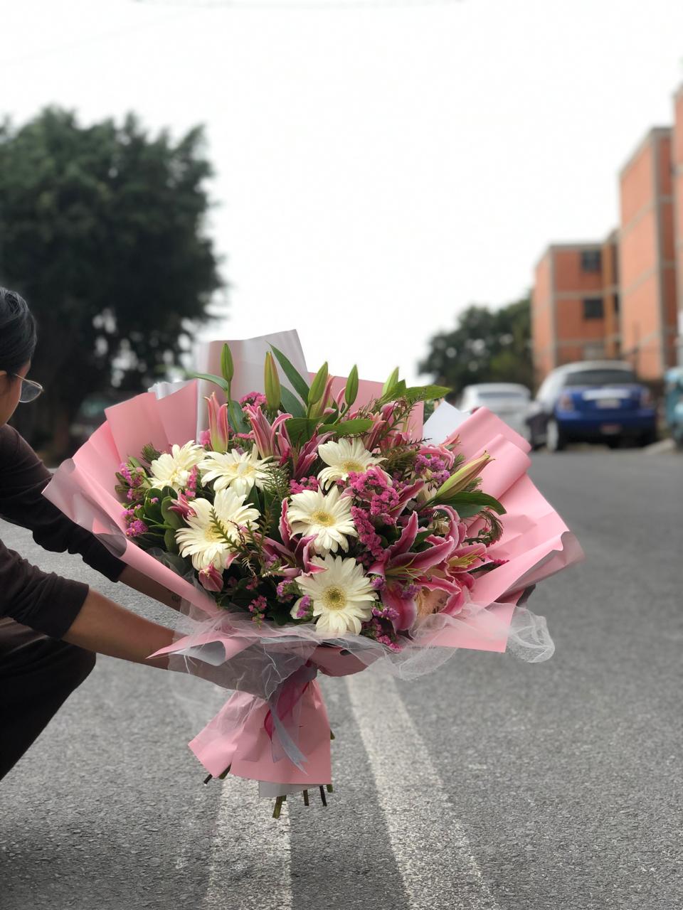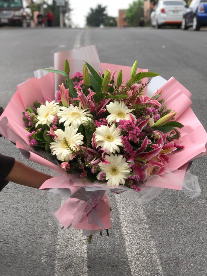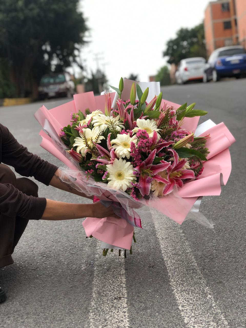 Un ramo lleno de vida, con flores frescas que desprenden un aroma suave y encantador. Ideal para regalar o dar un toque especial a cualquier espacio, su colorido y elegancia lo convierten en una opción que enamora a la vista y acaricia los sentidos.