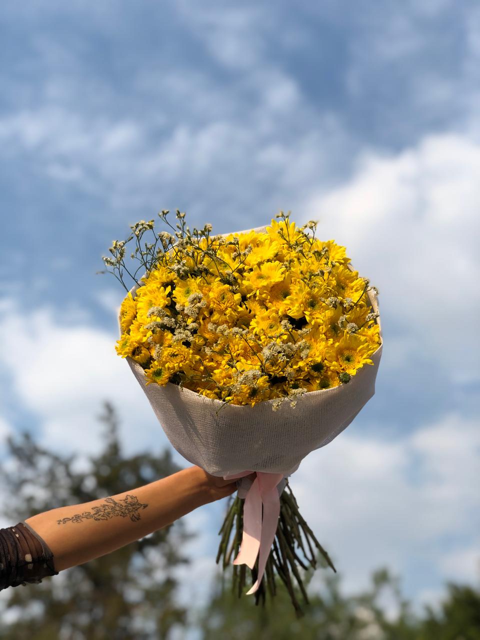 Radiante como una mañana luminosa, esta combinación de margaritas amarillas transmite alegría desde el primer vistazo. Su frescura natural recuerda la calidez del sol y despierta sonrisas sin esfuerzo. Perfecto para compartir gratitud, buenas vibras y ese cariño genuino que hace bien al alma.