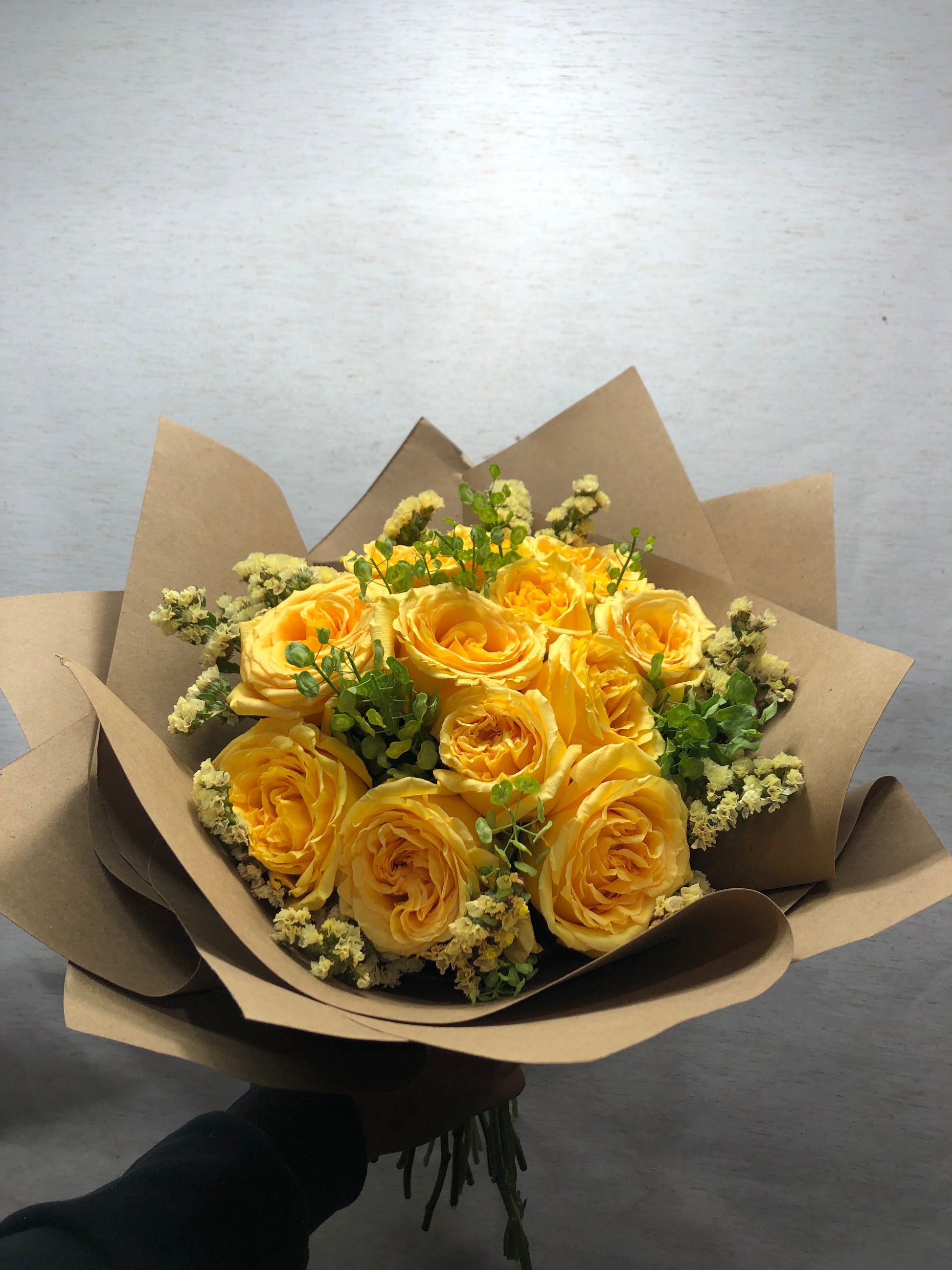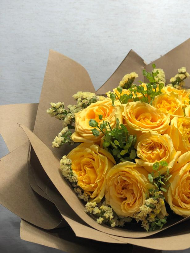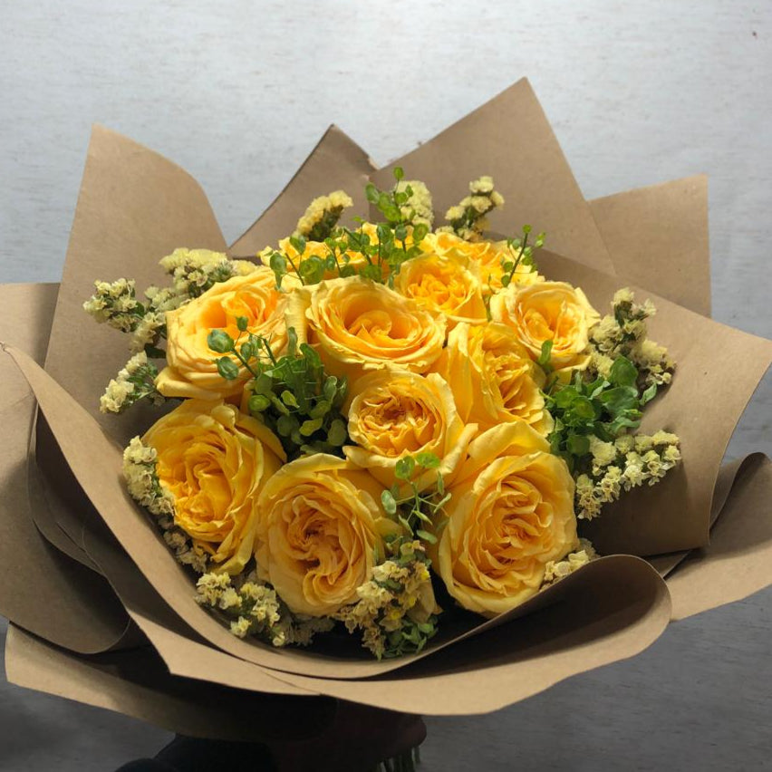 Es una luminosa combinación de flores en tonos amarillos y dorados que evocan la belleza serena de un nuevo día. Lleno de vida y esperanza, este ramo es perfecto para celebrar nuevos comienzos, transmitir alegría o simplemente iluminar el alma.